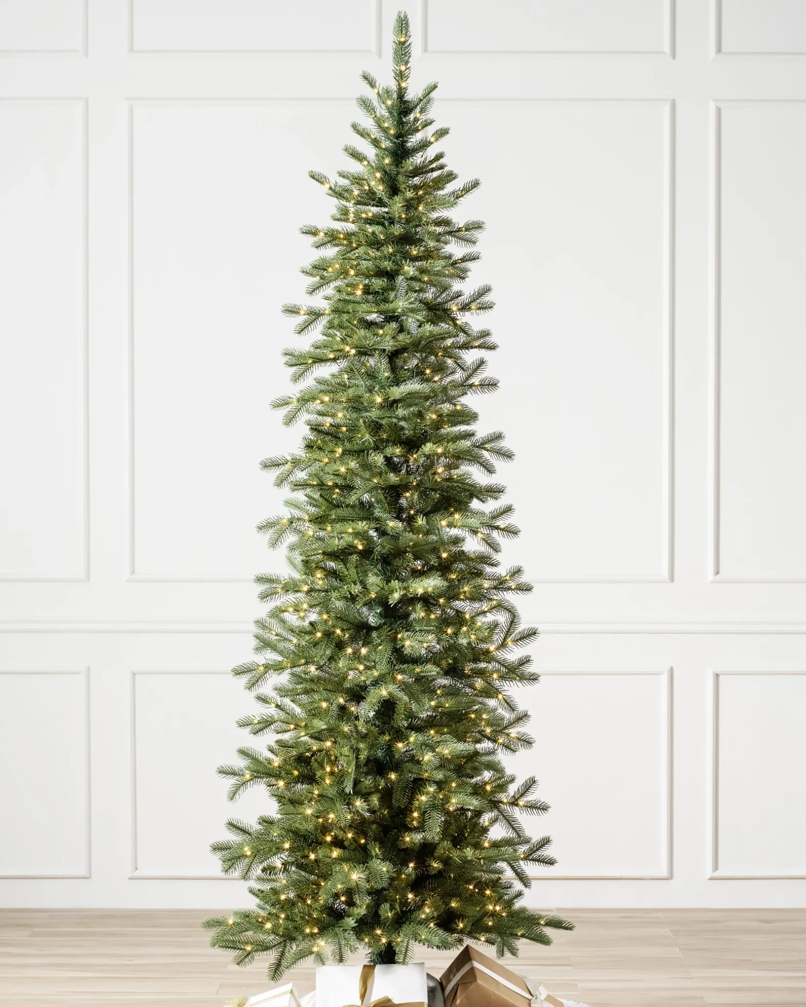 The snow-capped peaks of Schweitzer Mountain in Idaho serve as inspiration for our Cathedral Fir Tree. This tree features compact brown branches with an abundance of lifelike True Needle® foliage in medium and light green hues, accented by subtle silver-white edges for astounding realism. The pronged, outstretched tips are ideal for displaying your most beautiful Christmas ornaments.